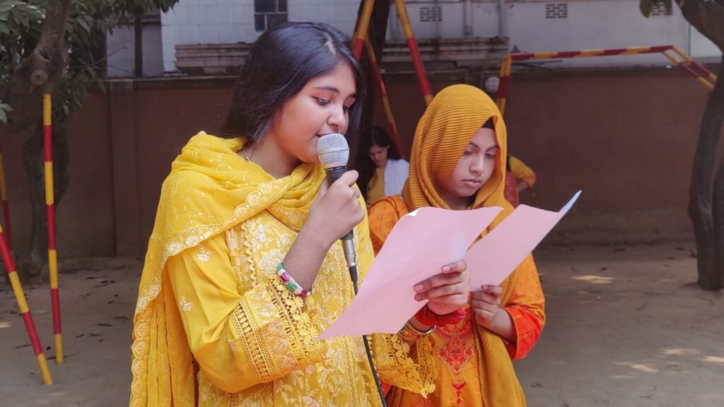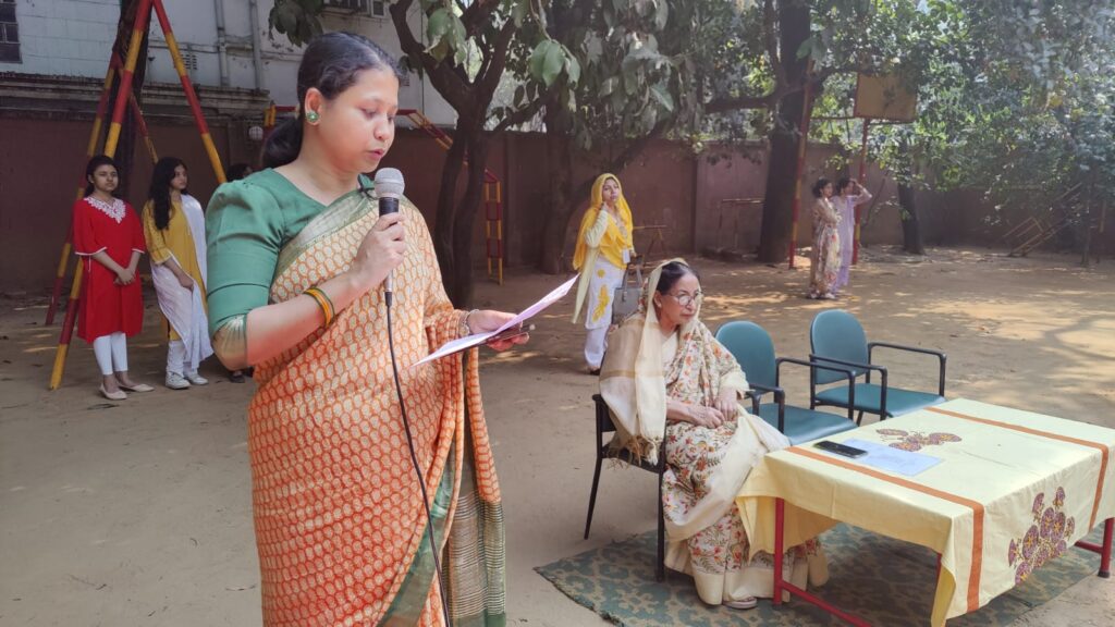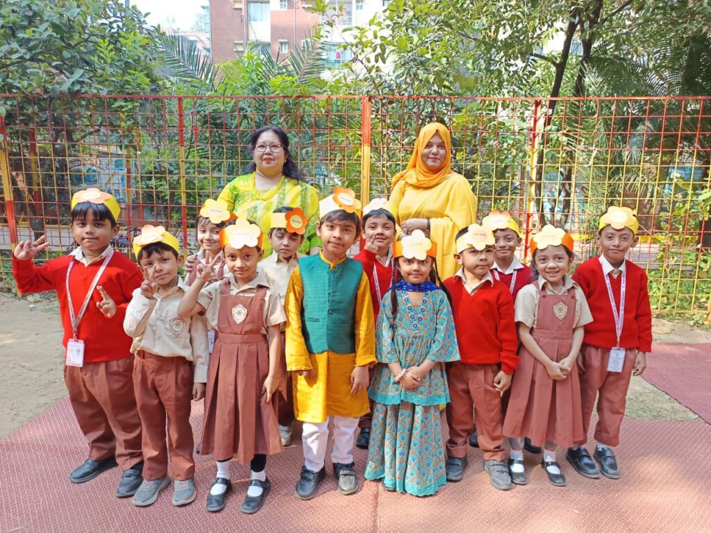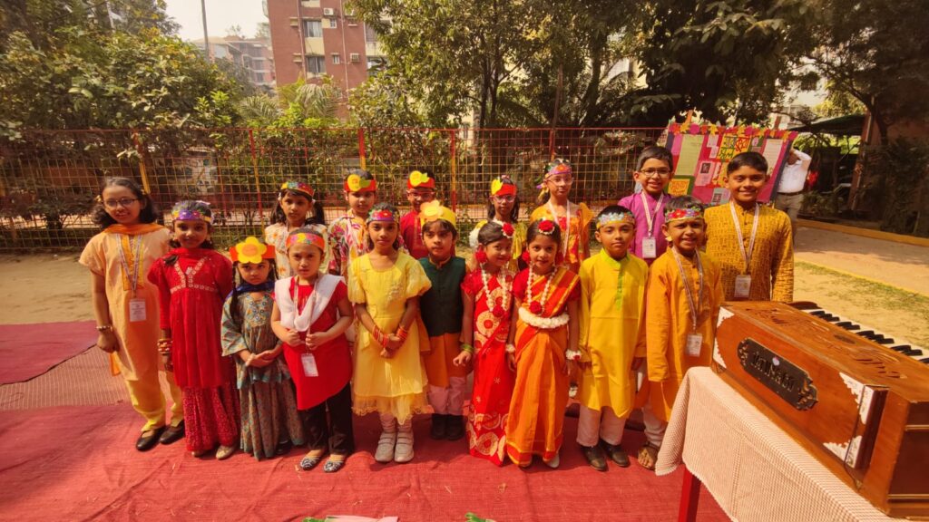 Marie Curie School-এ আনন্দঘন বসন্ত বরণ অনুষ্ঠান ২০২৬। শিক্ষার্থীদের গান, নাচ ও রঙিন পরিবেশনায় মুখর ক্যাম্পাস। বসন্তের শুভেচ্ছা।